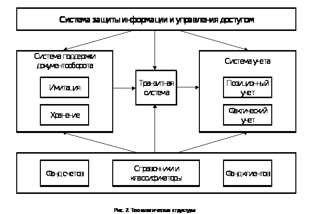 Во “внутренней организации” системы можно выделить три основные составляющие: систему защиты информации и управления доступом, систему учета и систему обеспечения документооборота (Рис.2. Технологическая структура. Приложение №1).