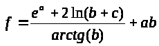 f:=(exp(a)+2*ln(b+c))/(arctan(b))+a*b;