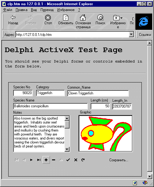 Далее можно запустить и протестировать клиентское приложение, а если он выполнено в виде ActiveX - осуществить его поставку на Web-сервер вместе с библиотекой dbclient.dll и протестировать, обратившись к сгенерированной HTML-странице (рис.5).