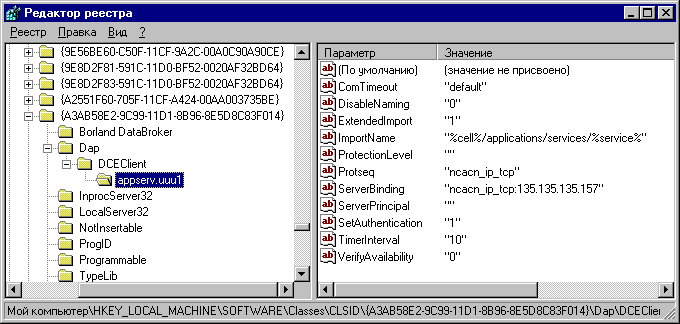 Рис.6 Раздел Dap\DCEClient\ реестра клиента при импорте объекта