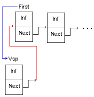 {cout << Vsp->Inf << ' '; Vsp=Vsp->Next;}