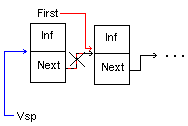 Zveno = Record Inf : BT; Pred, Next: U End;