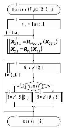s – подпись хэш–блока, состоит из массива X, содержащего 2n>G> n-битовых элементов подписи битовых групп, и массива D, содержащего L n-битовых хэш–комбинаций;
