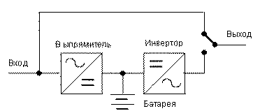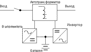 Как мы увидим дальше, не только схема с двойным преобразованием энергии претендует на почетное в компьютерных кругах звание on-line. Поэтому в дальнейшем я постараюсь не злоупотреблять этим термином и буду называть ИБП по их характерным схемным отличиям.