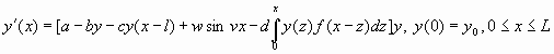 Пример 3. Рассмотрим модель управления налоговыми сборами. Динамика изменения прибыли предприятия y(t) может быть описана простейшей моделью В. Вольтерра для c=w=d=0, т.е. моделью