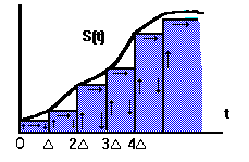 Рассмотрим некоторый сигнал S(t), причем для определенности скажем, что S(t)=0 при t<0. Пусть {D,2D,3D,...} - последовательность моментов времени и {S1,S2,S3,...} - отвечающая им последовательность значений сигнала. Если начальное значение сигнала есть S0=S(0), то текущее значение сигнала при любом t можно приближенно представить в виде суммы ступенчатых функций :