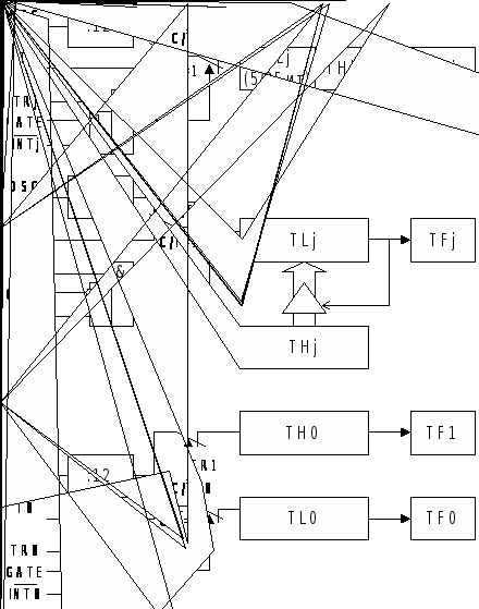 Два программируемых 16-битных таймера/счетчика (Т/С0 и Т/С1) могут быть использованы в качестве таймеров или счетчиков внешних событий. При работе в качестве таймера содержимое Т/С инкрементируется в каждом машинном цикле. При работе в качестве счетчика содержимое Т/С инкрементируется под воздействием перехода из 1 в 0 внешнего входного сигнала, подаваемого на соответствующий (Т0, Т1) вывод МК51. Так как на распознавание перехода требуется два машинных цикла, то максимальная частота подсчета входных сигналов равна 1/24 частоты резонатора. На длительность периода входных сигналов ограничений сверху нет. Для гарантированного прочтения входного считаемого сигнала он должен удерживать значение 1 как минимум в течение одного машинного цикла.