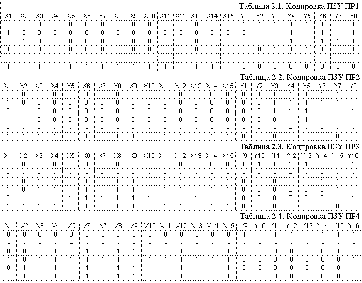 Программирование микросхем ПР1 - ПР4 будем проводить, соответственно, по таблицам 2.1 - 2.4.