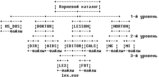 DIR [/P/W]-просмотр каталогов, формат команды: