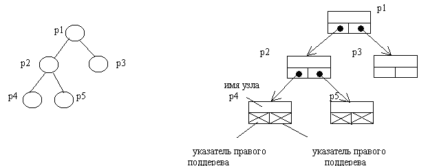 Рис. 7. Представление бинарного дерева в виде списковой структуры.