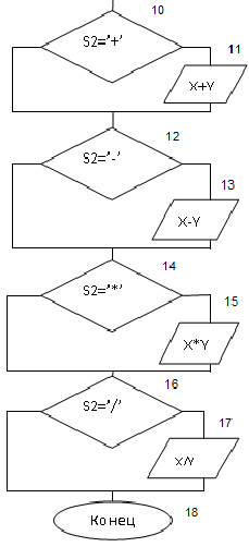 Блок условия s2=’+’ |