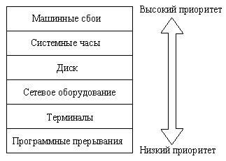 так, как будто ничего не случилось. Устройствам обычно приписываются приоритеты в соответствии с очередностью обработки прерываний. В процессе обработки прерываний ядро учитывает их приоритеты и блокирует обслуживание прерывания с низким приоритетом на время обработки прерывания с более высоким приорите-том.