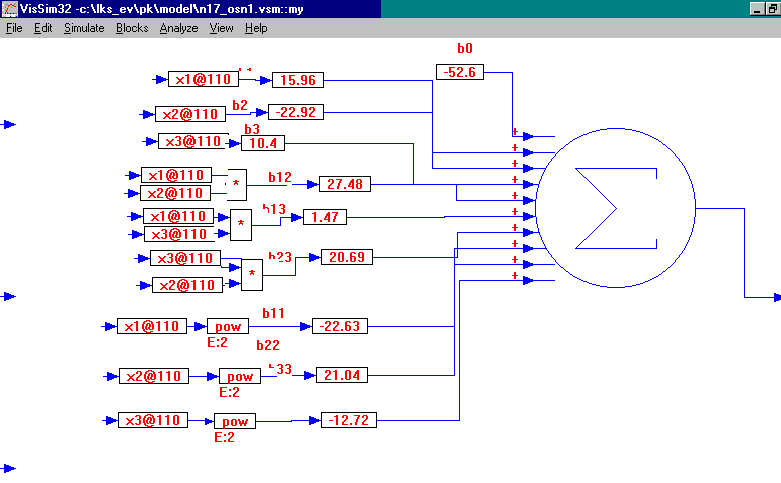 Составим последовательность имитации эксперимента, исходя из данных курсового задания, и представим в матричной форме. Имитационная модель – это модель системы управления с введением случайной переменной погрешности b=1,1.