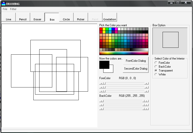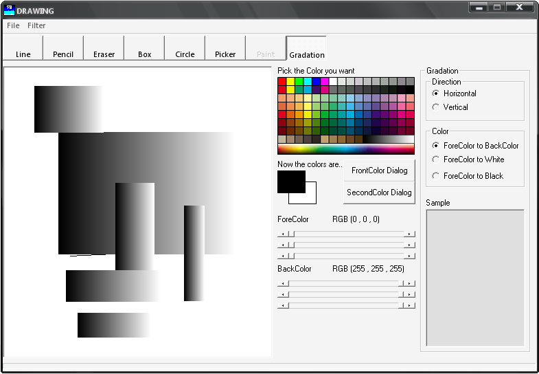 If GradationDirection(1).Value = True Then MainPic. Line (XX, i) – (XX2, i), RGB (D1, D2, D3)