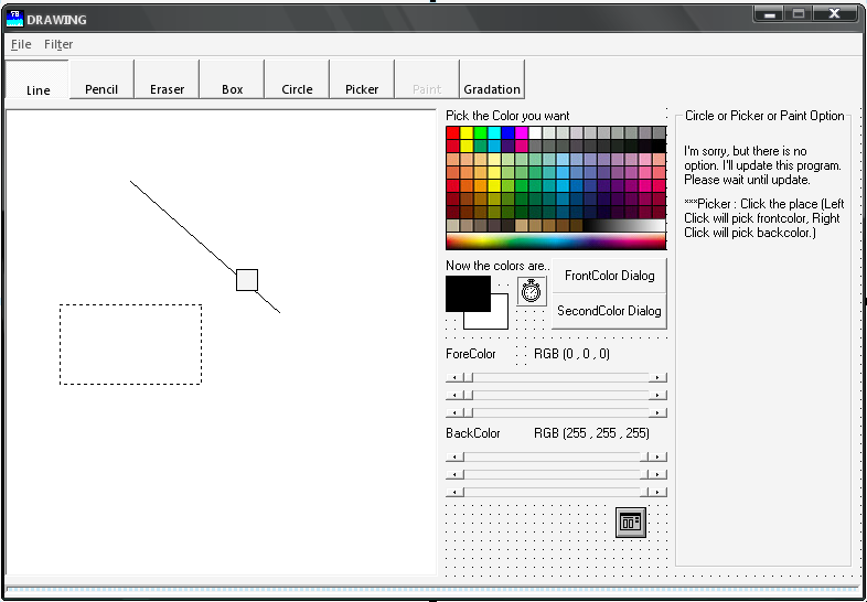 If GradationDirection(1).Value = True Then Picture1. Line (0, i) – (Picture1. ScaleWidth, i), RGB (D1, D2, D3)
