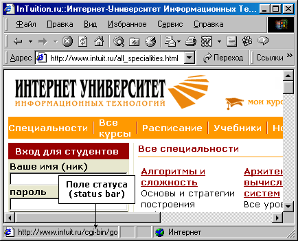 Схема URL (Uniform Resource Locator) - это один из основных элементов Web-технологии. Каждый информационный ресурс в Web имеет свой уникальный URL. URL указывают в атрибуте HREF контейнера A, в атрибте SRC контейнера img, в атрибуте ACTION контейнера FORM и т.п. Все URL подразделяются на схемы доступа, которые зависят от протокола доступа к ресурсу, например, для доступа к FTP-архиву применяется схема ftp, для доступа к Gopher-архиву - схема gopher, для отправки электронной почты - схема smtp. Тип схемы определяется по первому компоненту URL: http://intuit.ru/directory/page.html .В данном случае URL начинается с http - это и есть определение схемы доступа (схема http).
