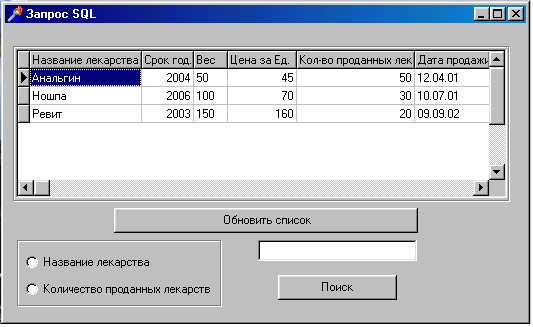 Фирма, занимающаяся продажей и учетом лекарственных средств. Для осуществления операций с поставками и заказами новых лекарственных средств, им необходимо заполнить накладные, в накладной указаны предприятие, которое осуществляет поставку, дата прибытия лекарств на склад. После лекарственные средства подсчитывают, устанавливают на них цену, по которой их будут продавать. Когда лекарства подсчитаны и установлена цена на него, то их распространяют по торговым точкам. В магазинах, которые занимаются продажей лекарств, при продаже его выдается чек покупателю, где указана дата продажи, количество купленного лекарства, стоимость за единицу товара. На основе полученных документов были созданы таблицы с полями.