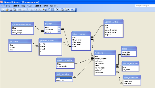 Код_nomera №_komnati Stoimost’ Код_mesto Name_mesto Код_vidi Name_vidi Код_kol_mest Kol_mest Num_klass Name_klass Num_sost Name_sost |