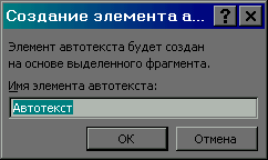 Когда часто приходится вводить в документы одни и те же длинные названия компаний или использовать для оформления документов стандартные объекты (логотип компании, стандартный заголовок делового письма и т.д.), эту процедуру можно упростить с помощью средства, называемого автотекстом. Автотекст позволяет быстро вставить в документ требуемые объекты и гарантирует правильность при повторном вводе текста. Эта функция позволяет сохранять часто используемые фрагменты текста (или рисунка) и при необходимости быстро вставлять в текст.