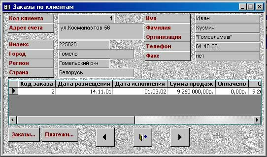 Заказы по клиентам, выводит информацию о клиентах и их заказах.