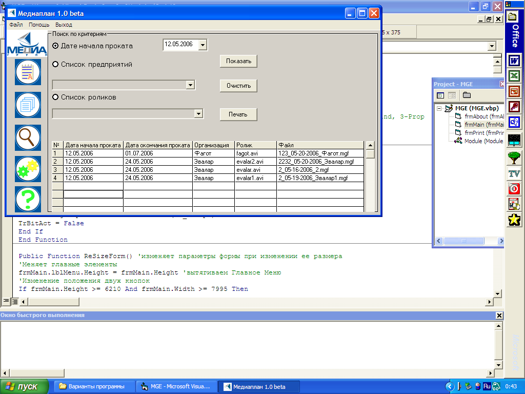 Средой разработки системы является Microsoft Visual Basic версии 6.0.