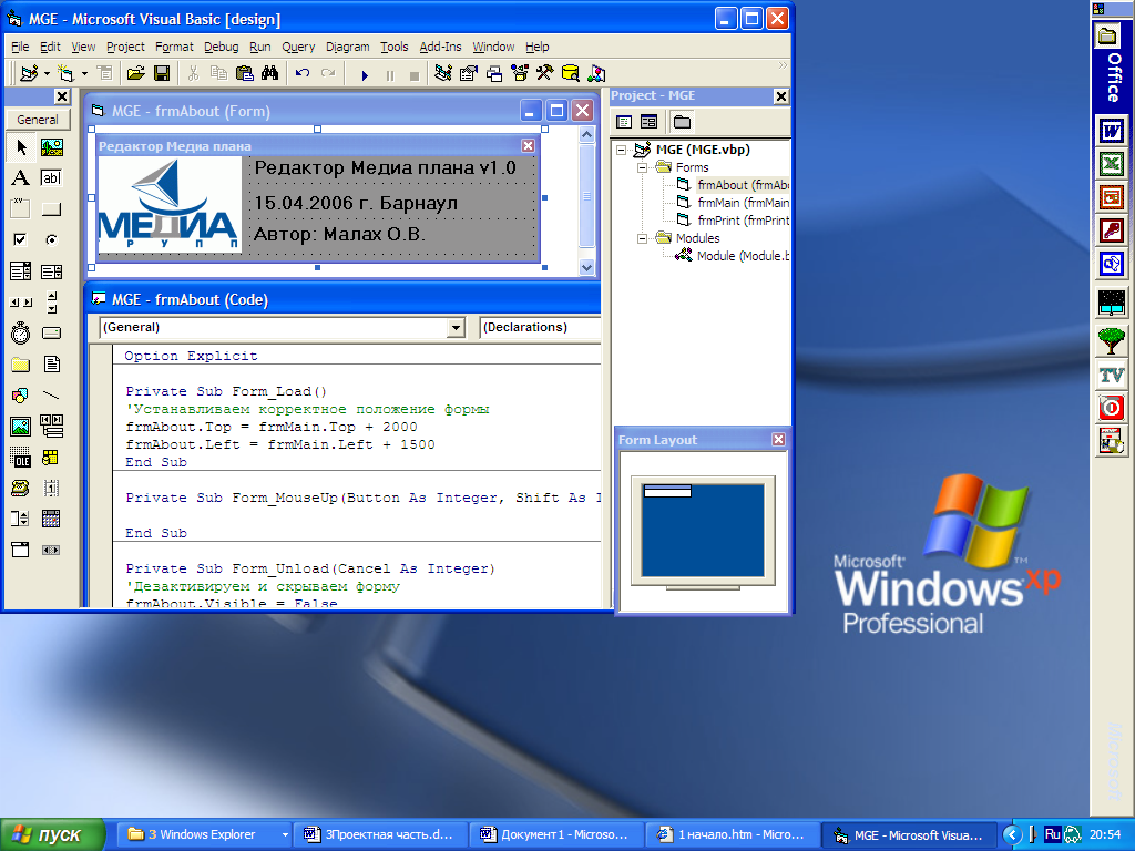 Темой моего дипломного проекта является: «Автоматизация разработки медиаплана для ООО «Медиа-Групп»».