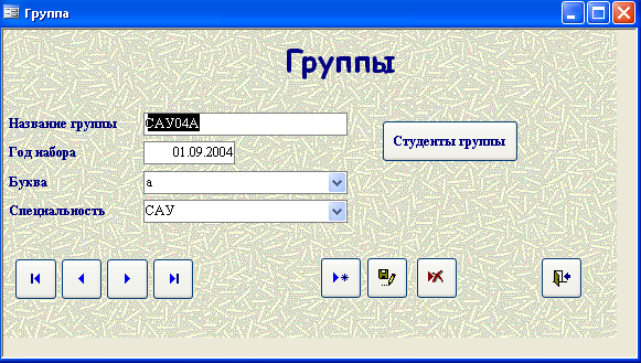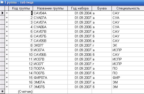 Также в нашей базе необходимо указывать группу, где учитываем год набора и буквы той или иной группы. Так как группа принадлежит к специальности, то мы должны занести такую информацию: полное, кратное название специальности и шифр. Любая специальность относится к определенному факультету, о котором нам нужно знать полное, краткое название, ФИО декана, номер телефона деканата.