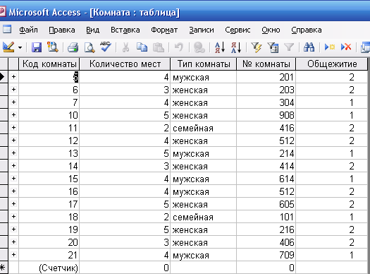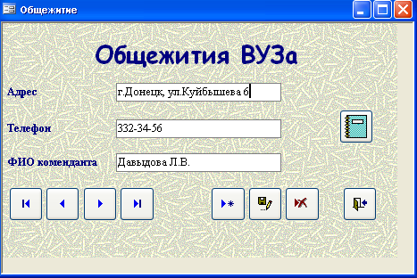 Выбирая соответствующие кнопки на формах «Студенты ВУЗа», «Комнаты», а также некоторые другие связные формы можно осуществить просмотр и печать) отчетов.