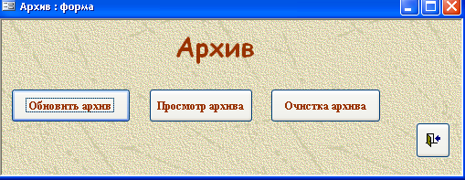 Для перехода к окну архивации выберите кнопку "Архив" в форме