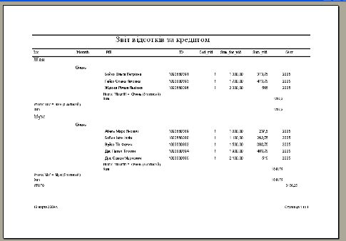 Відомість „Звіт відсотків за кредитом” зображено на рис.5.5.