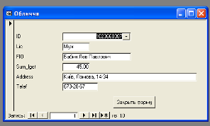 При виборі режиму обличчя з первісного документу вводяться дані про обличчя – ідентифікаційний номер, ПІБ, сума комісійних, тощо. Якщо помилок немає, то робиться запис у базу даних.