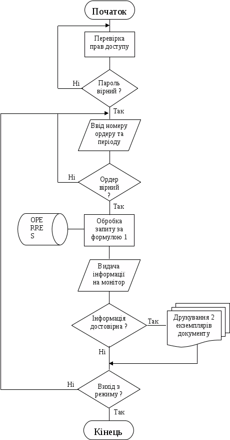 Задача отримує дані з файлу OPERRES, в якому зберігається інформація про всі операції по балансових рахунках матеріальних ресурсів, які були проведені у підприємстві за певний час. Операціоніст уводить номер ордеру та період, за який треба відібрати інформацію. На виході маємо ордер по балансовому рахунку, що відбивають матеріальні ресурси, чи реєстр ордерів у вигляді документу, що видається керівництву підприємства.