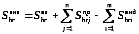 де, S>hr>, S>hrj>, S>hri> – відповідно залишок, надходження та витрати матеріальних ресурсів за h-ий період за r-им ордером згідно з j-им прибутковим чи i-им видатковим документом.