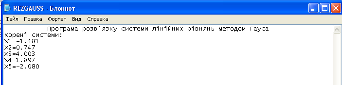 2.6 Текст програми розв'язку системи лiнiйних рiвнянь методом Гауса