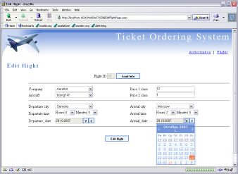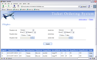 Ставится задача разработки многопользовательской системы, предназначенной для поиска и заказа билетов на авиарейсы. Каждому пользователю должна предоставляться возможность найти интересующие его рейсы, получить информацию о времени вылета и прибытия, авиакомпании, обслуживающей данный рейс, а также сделать заказ определенного количества билетов на выбранный рейс. Так же система должна предоставлять администратору системы WEB-интерфейс для её сопровождения.