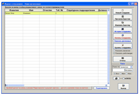 Дружественный интерфейс облегчает ввод информации и обучение работе. Логика системы интуитивно понятна любому (даже начинающему) пользователю. Экранный вид всех документов приближен к стандартному, основным действиям в системе соответствует стандартный набор функциональных клавиш. Если вы случайно сделали что-нибудь некорректное, то "БОСС-Кадровик" сам предупредит вас и предложит вариант действий.