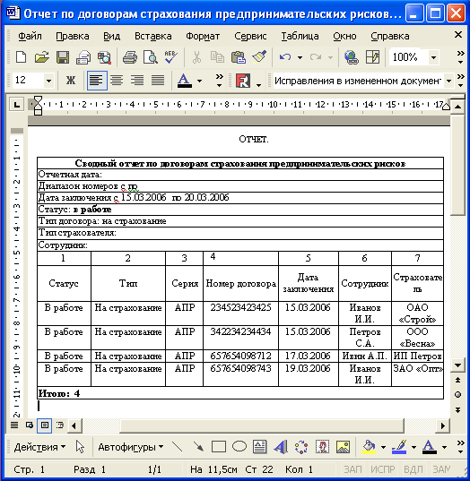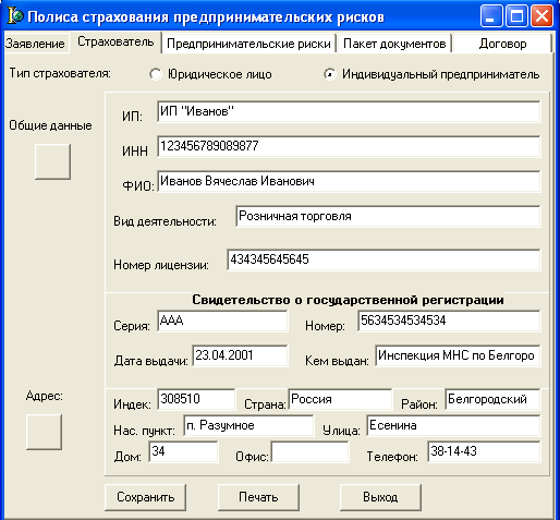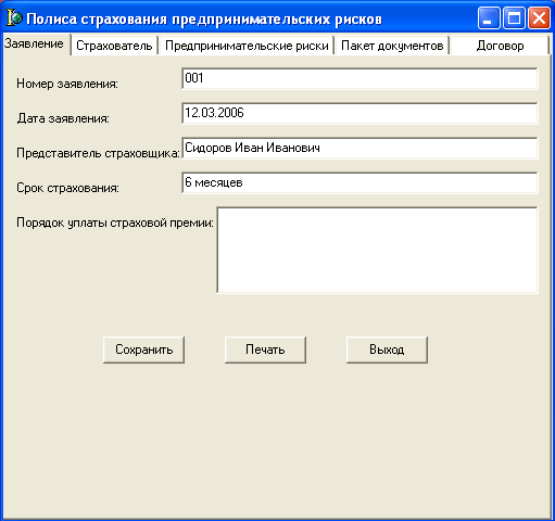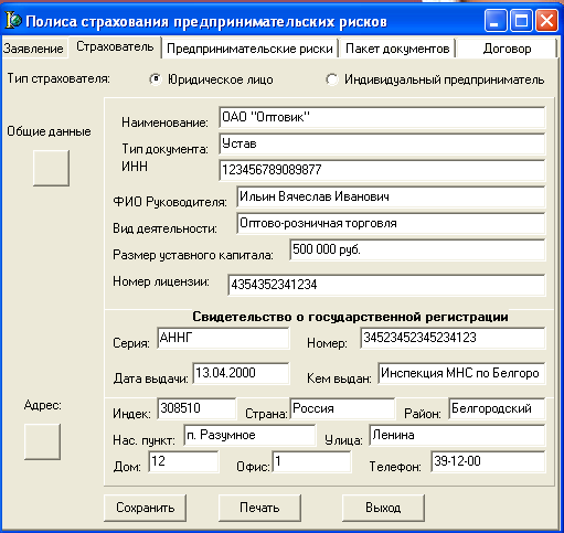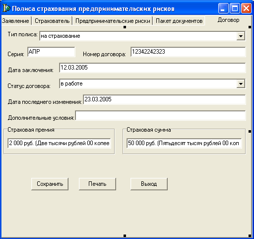 Автоматизированная система учета договоров страхования предпринимательских рисков