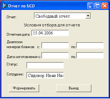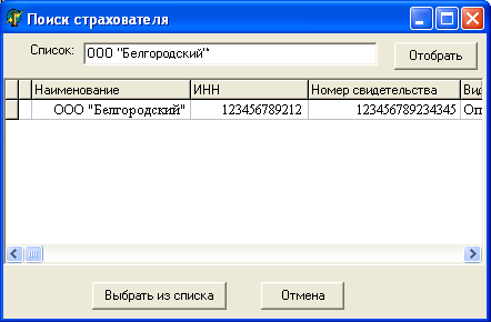 Поле выбора нужного типа документа открывается соответствующая форма. Если выбран тип: договор на страхование, то открывается окно "Учет договоров страхования предпринимательских рисков" (рис. 7); если бланк строгой отчетности, то инициируется окно "Бланк строгой отчетности" (рис. 22); если выбран тип – документ об оплате, то открывается окно "Документ об оплате" (рис.28). Поиск осуществляется по схеме описанной выше.