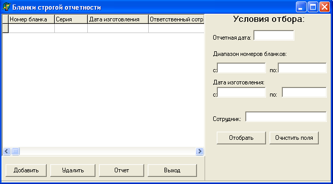 В Условии отбора "Отчетная дата" являются обязательным. Остальные условия, представленные в правой части окна заполняются по желанию.