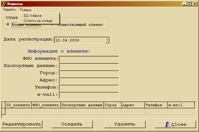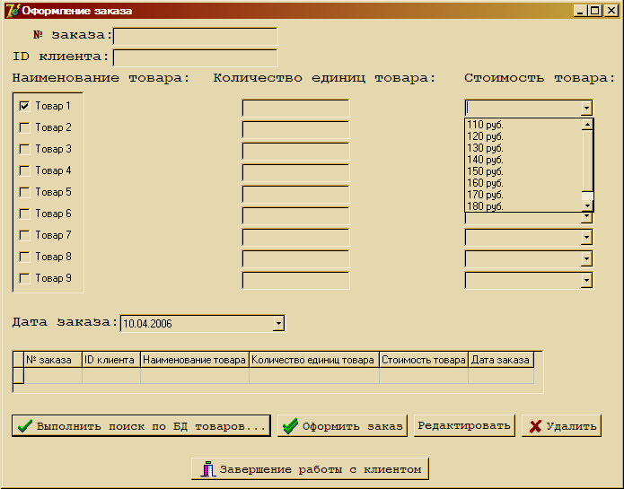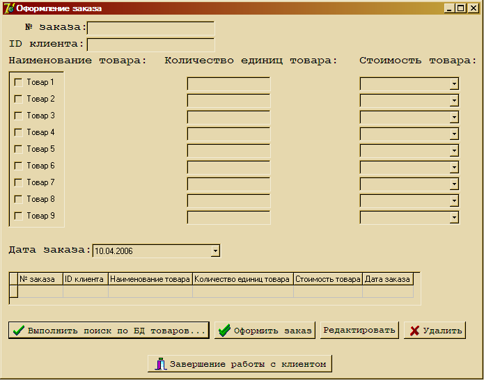 Система предназначена для хранения и обработки данных о имеющихся на складе товаров, об услугах, которые также предоставляются потребителям. Обработанные данные могут использоваться сотрудниками, оформляющими заказы, клиентами (о наличии услуг) и другими сотрудниками предприятия для принятия решений о предоставлении и реализации новых услуг.