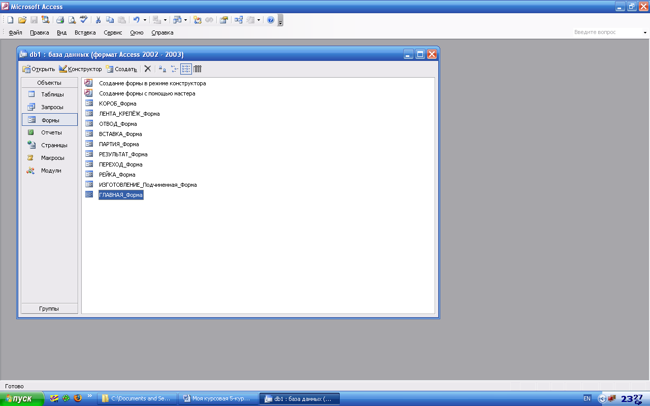 Чтобы открыть любой объект в режиме Конструктора, необходимо выделить этот объект в списке и нажать кнопку Конструктор (Design).