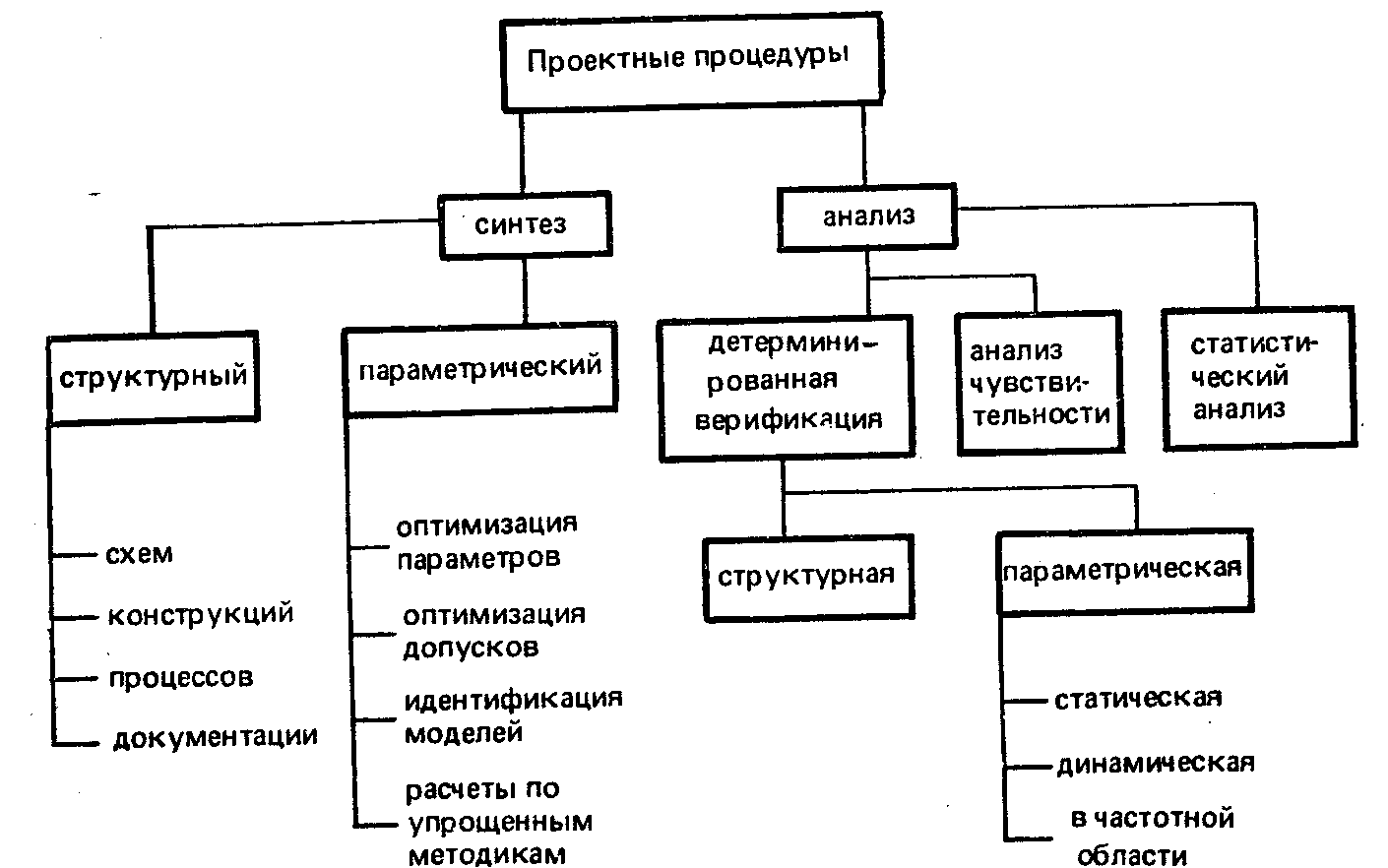 Складові частини етапу проектування називають проектними процедурами. Проектна процедура – частина етапу, виконання якої закінчується одержанням проектного рішення. Кожній проектній процедурі відповідає деяка задача проектування, розв'язувана в рамках даної процедури.