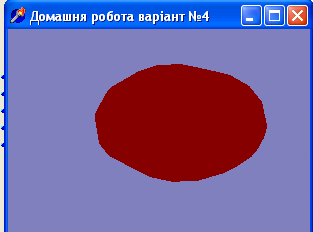 При підготовці цього рисунка до друку був змінений колір тла на білий. Однак на екрані монітора значно краще виглядає темно-синій колір. У тексті програми: