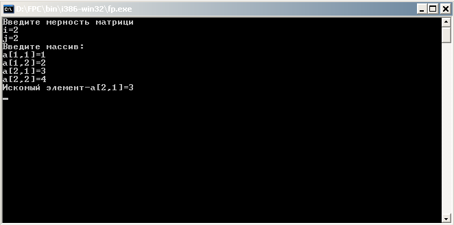 Writeln('Искомый элемент-a[',y,',',c[y],']=',a[y,c[y]]);