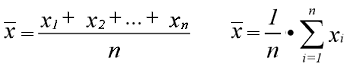 Наряду с функцией частоты основную совокупность данных можно охарактеризовать с помощью среднего значения и дисперсии. Арифметическое среднее значение определяется так: