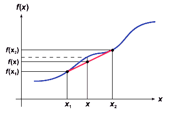 При линейной интерполяции выполняют аппроксимацию функциональных значений f (x) на промежутке (x>1>,x>2>) из известных значений f (x>1>) и f (x>2>).