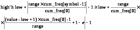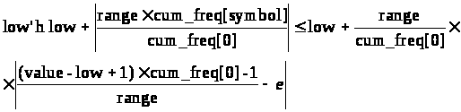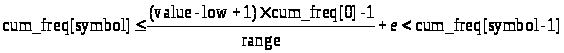 low = low + (range*cum_freq[symbol]) / cum_freq[0];