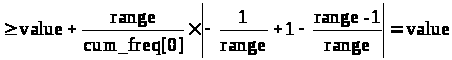 cum=(int)((((long)(value-low)+1)*cum_freq[0]-1)/ range);