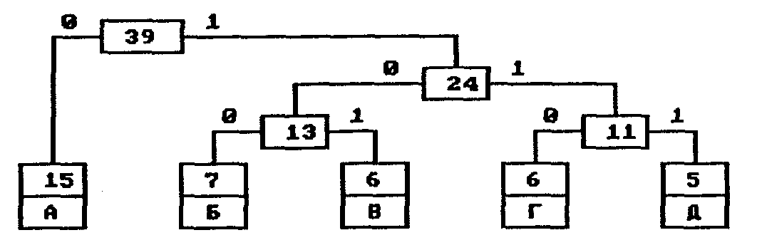 5. Одной дуге, выходящей из родителя, ставится в соответствие бит 1, другой - бит 0.