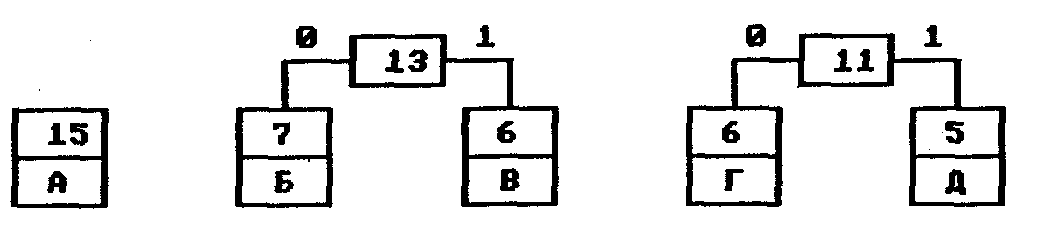 2. Выбираются два свободных узла дерева с наименьшими весами.